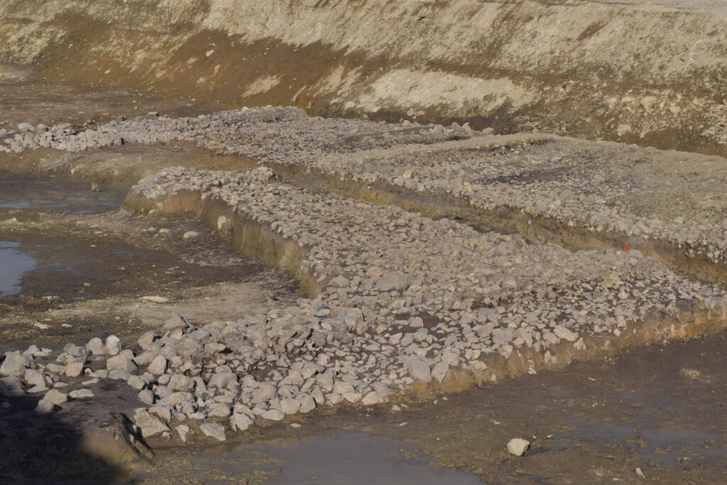 見どころは4つに分かれていて、ひとつは太田遺跡の発掘調査。市域の東部、追手門学院大学茨木総持寺キャンパスの一帯で調査を実施した時のものです。ここは古墳時代中期後葉〜後期初頭の遺跡で、謎の礫群(れきぐん)が発見されたというのです。どうやら近くの相川から人の頭大の石を大量に持ってきたようですが、水はけが悪いので地盤改良工事のために持ってきた可能性もあるそうです。この時代の人が大規模な工事をすることは珍しいので取り上げられました。
