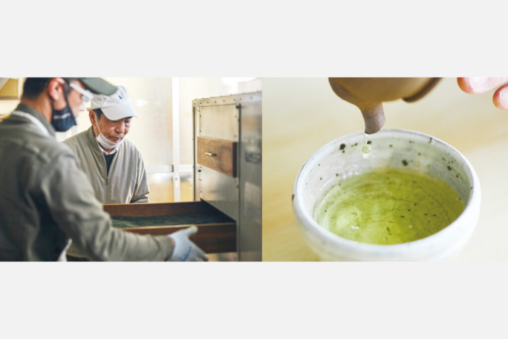 茶葉に残る5%の水分を抜くことで、格段に茶の香りが立ち、劣化することなく熟成できるという。抹茶と煎茶、どちらもお試しあれ。