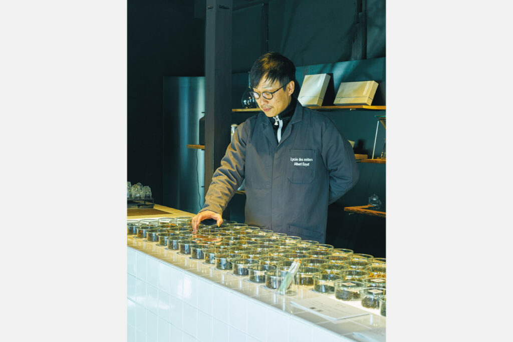 「全国をお茶で旅する」をテーマに、各地から選び抜いた極上の茶葉を、水出しで提供する茶寮。日本茶に多いブレンド(合組)の茶葉でなく、味の個性が明確なシングルオリジンにこだわり、店内の専用ドリッパーで一滴ずつ抽出する。
