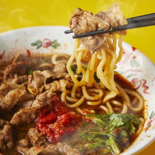 麺はもちもち、牛肉はホロホロとしていて、スープには牛肉のうま味や甘めのダシの滋味深さがにじみ出ていてついつい飲んでしまう一品。五香粉はほんのり甘く香る程度なので、苦手な人も一度は試して欲しいメニューです。