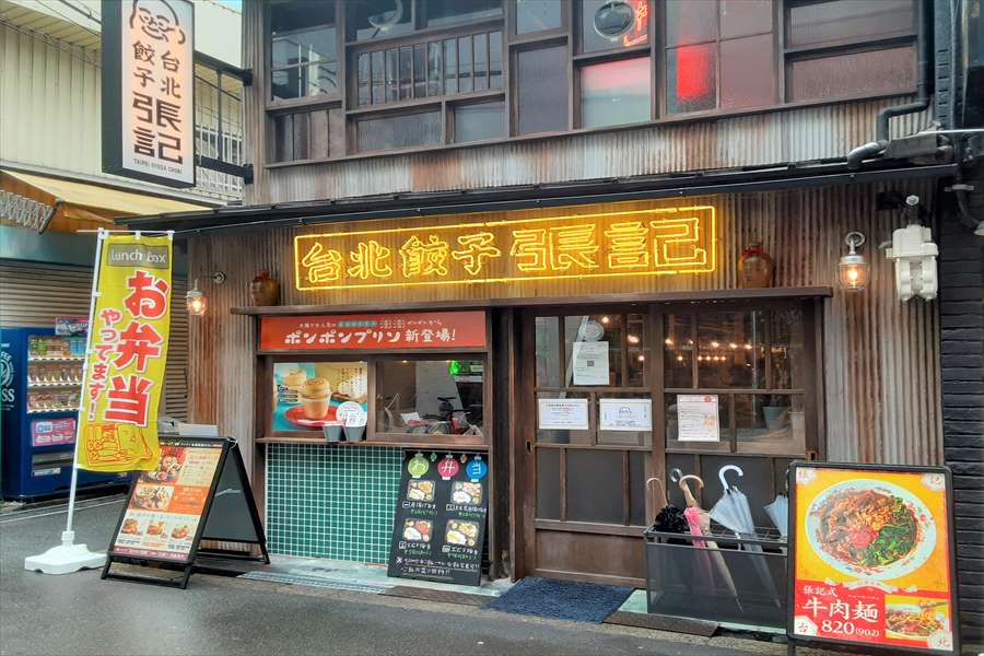 2021年3月にオープンした「台北餃子 張記(たいぺいぎょうざ ちょうき)茶屋町店」は、レトロなトタン作りの外観に一際目立つネオンサインが目印。台湾の裏路地に迷い込んだような錯覚を起こすお店です。