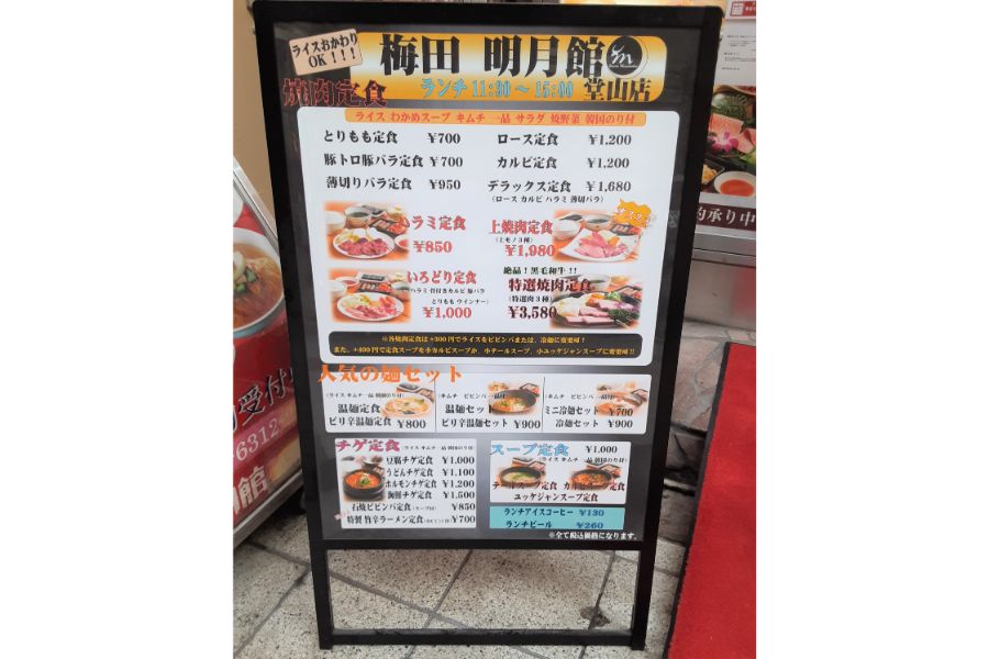 また、「梅田明月館堂山店」はランチのメニューも豊富。冷麺や温麺のセットやチゲのほか、お肉はお肉でも「とりもも定食」、「豚トロ、豚バラ定食」などもあり、700円からいただくことができるんです。