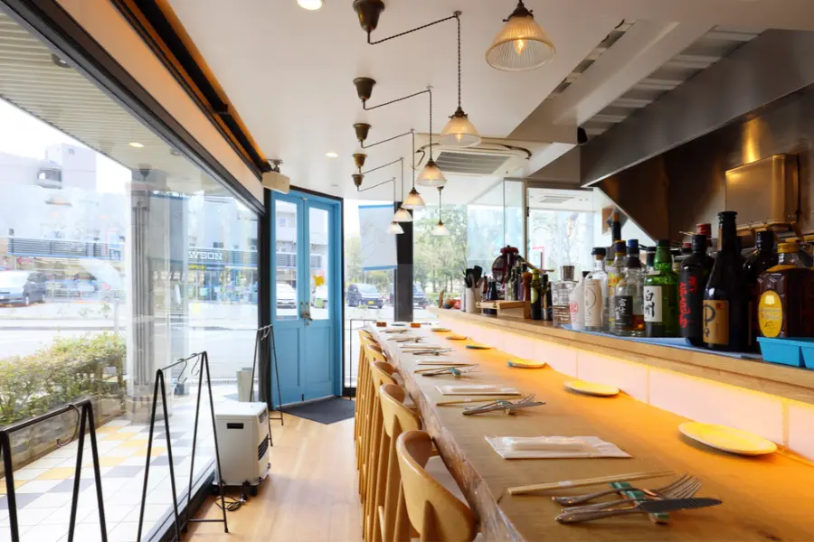 閑静でおしゃれな住宅街・苦楽園口にある開放感抜群のおしゃれなイタリアンが「BLU CHIARO(ブル キアーロ)」。席数はカウンター席のみとこじんまりしていますが、その分シェフやお客さんとの距離も近く「友人を自宅に招くような楽しい感覚」をテーマにおもてなしをされているのだそう。