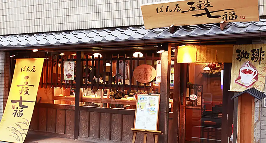 「五穀七福(ごこくしちふく)西宮北口店」は、和素材を使用した体に良いパンを提供するお店。阪急西宮北口駅北西すぐにあり、ひっきりなしに人が訪れる人気のパン屋さんです。