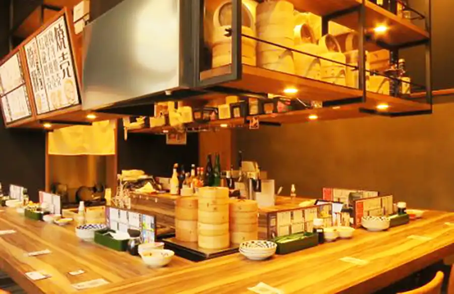 阪急西宮北口駅から北西へ徒歩3分という抜群の場所にある「シュウマイと焼豚 西宮ブルース」。中華バルスタイルのお店で、店内はカウンター席のみ。