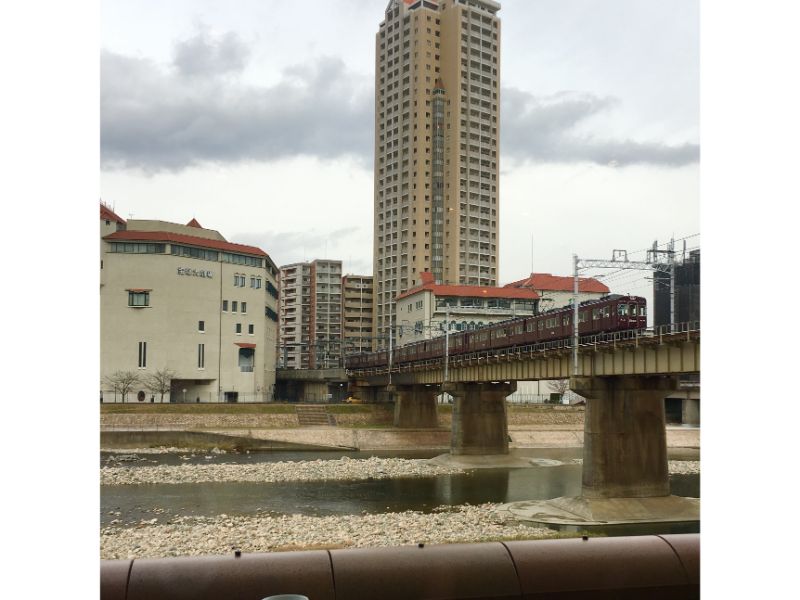 武庫川沿いビルの2階にある「カロスキューマ」は、宝塚大劇場と阪急電車が両方見られる抜群の立地のイタリアンです。武庫川を渡る阪急電車の景色は、「開店して10年以上経つけれど、毎日見ていても飽きない景色」と店長。確かにずっと眺めていたくなる風景です。