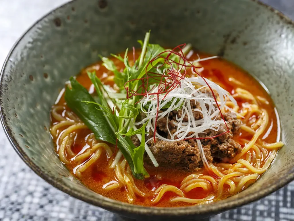 もう一品は、暑い夏にぴったり、パンチのある味わいがやみつきになる「冷製担々麺」。肉味噌と濃厚な胡麻の風味、辣油が効いたピリ辛の冷たいタレ、仕上げに加えた老陳醋(ラオチェンツゥ)の酸味が、全体の味を一層引き立てます。