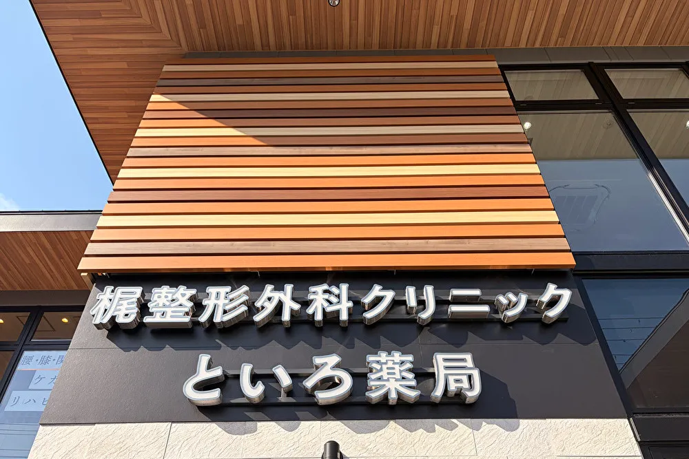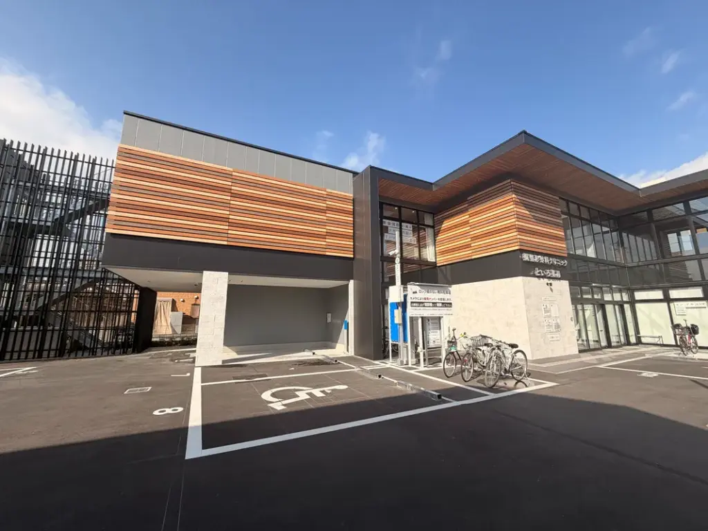 2階には「梶整形外科クリニック」が入り、リハビリテーションにも対応しているようです。黒×白と木を使ったシックな外観で、駐車場もゆったりとしていて停めやすそうです。