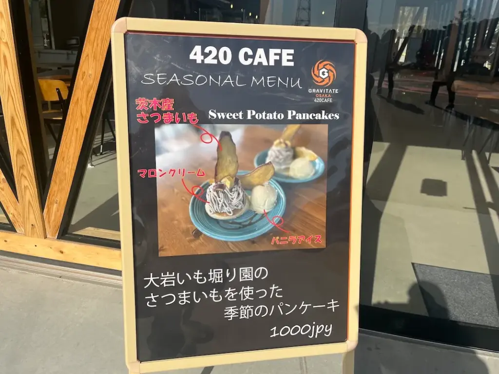 さつまいもスティック以外に、420CAFEでは「さつまいもを使った季節のパンケーキ」もありました。420CAFEで使われているのは、ダムパークいばきたの近くにある「大岩いも掘り園」で育てたさつまいもです。ただし、さつまいもメニューは掘ったさつまいもがなくなり次第終了とのことです。