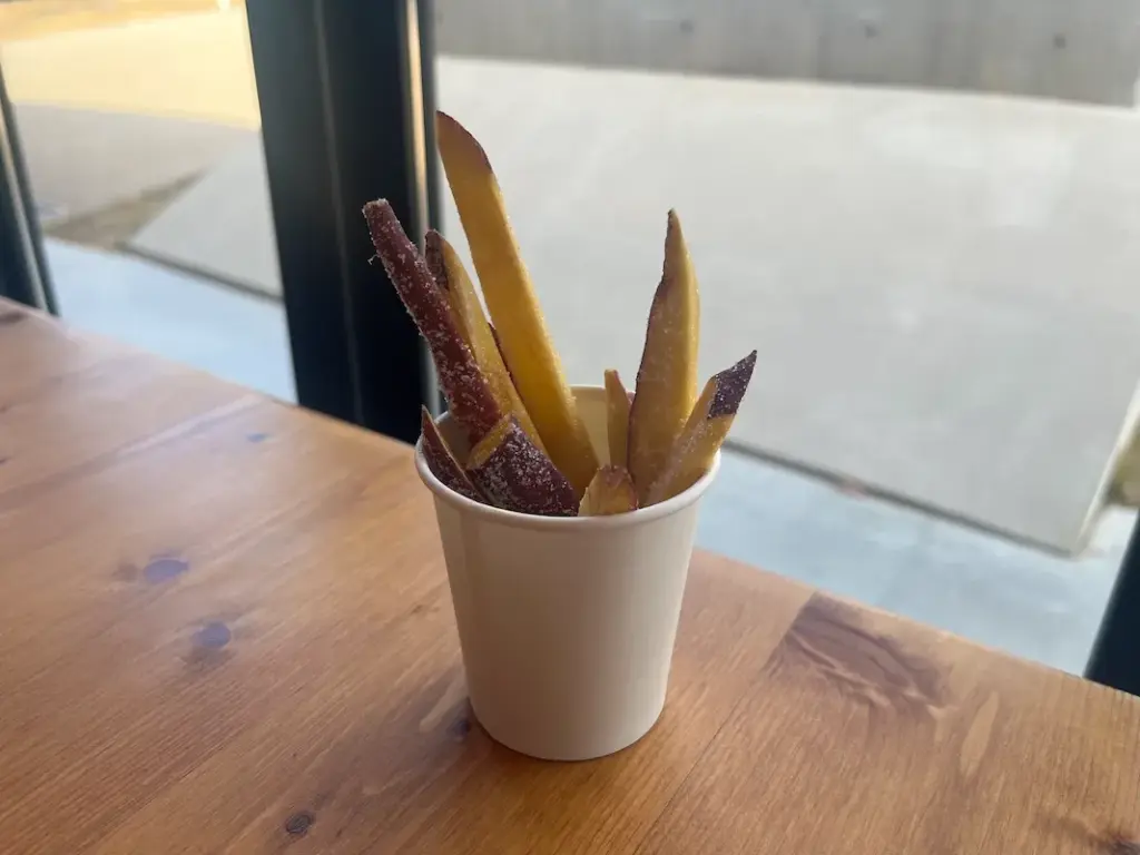 砂糖のシャリシャリした食感に、さつまいもはカリッとホクホク。おやつにぴったりのメニューでした。コップに入れてもらえるので、テイクアウトして食べ歩きにもぴったりです。お値段は400円でした。