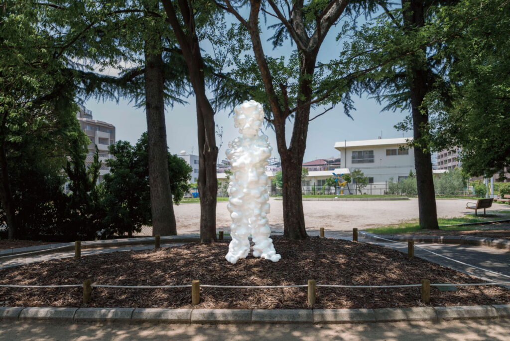 茨木市では、サン・チャイルド以外にも街角に彫刻を屋外に展示する彫刻展示事業をしていて、岩村俊秀さんの「はじまりーDeep Forest」や林宰久さんの「変様ー空へ」、名和晃平さんの「Trans-Ren(Bump,White)」など多彩な作品を鑑賞することができます。ひとつひとつの作品に込められたメッセージがあるので、深掘りしてみるのもおすすめです。