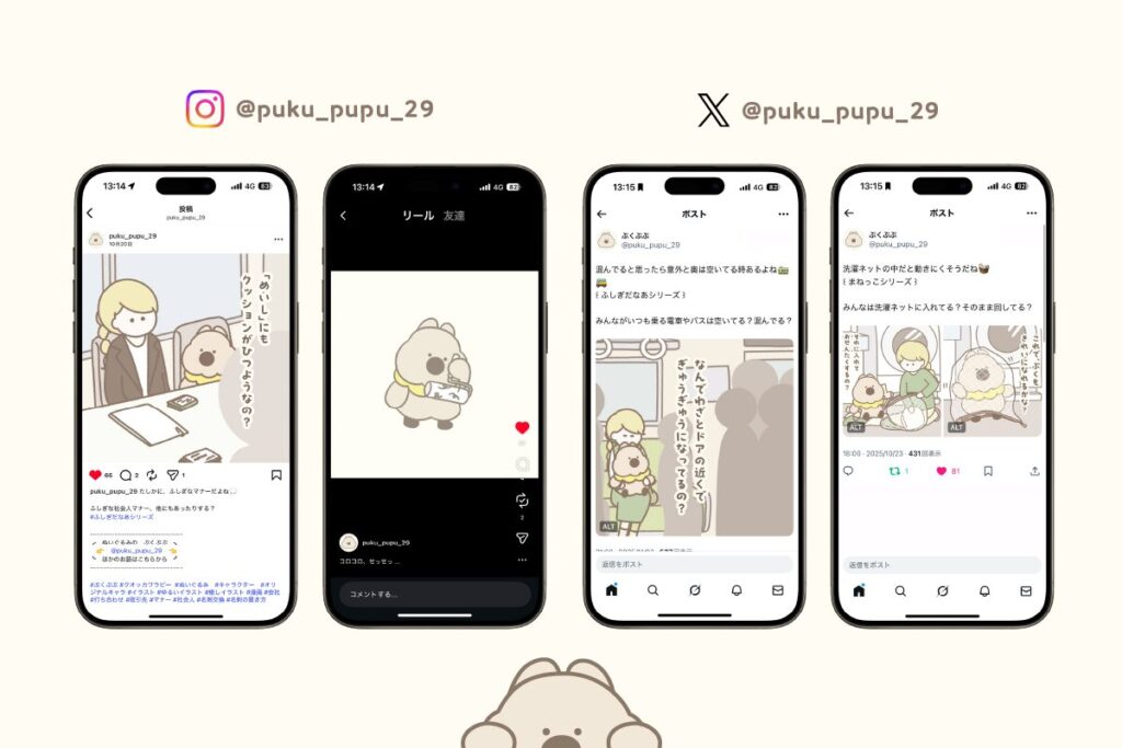 誌面や本記事ではご紹介しきれない、ぷくぷぷの日常のひとコマや漫画、アニメーション動画は、InstagramとXで公開しています。