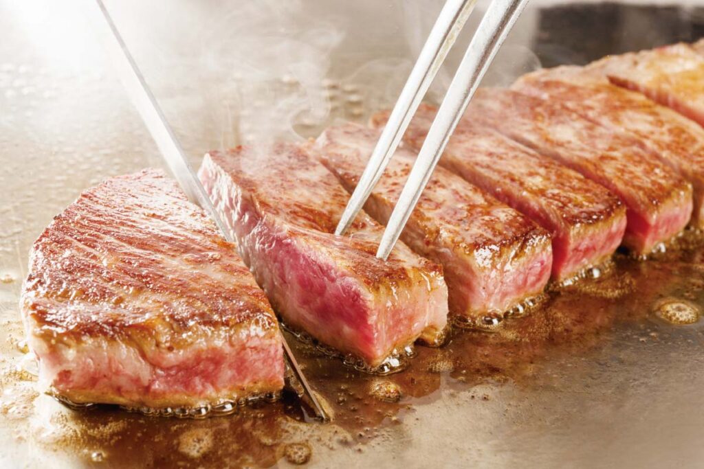 緑豊かな郊外に建つ邸宅風ホテル。歴史を感じる重厚なカウンターでいただける全6品のランチコースは、目の前で焼き上げる国産牛ロースが絶品。シェフによる華麗なパフォーマンスは臨場感にあふれ、鉄板焼の醍醐味(だいごみ)を楽しめる。