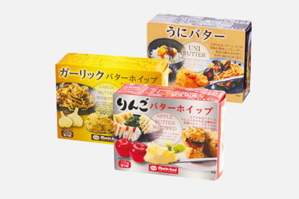詰め合わせ内容:うにバター、ガーリックバターホイップ、りんごバターホイップ