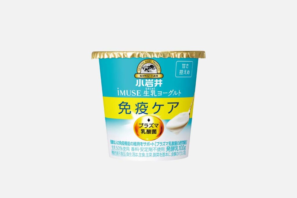 免疫維持に役立つプラズマ乳酸菌(L. lactis strain Plasma)1,000億個含有(100gあたり)。香料・安定剤不使用で、生乳を50%使用した甘さ控えめのおいしさで毎日食べられる。