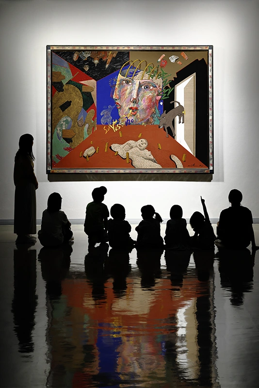 本展覧会では、家族や友達とおしゃべりをしながら作品を楽しむ対話型鑑賞が体験できる作品が展示されます。