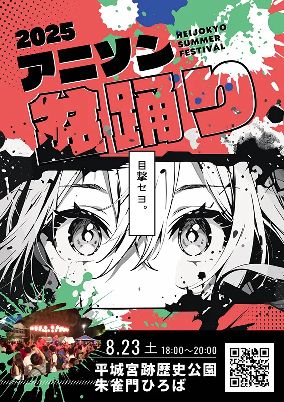 「アニメソング×盆踊り」は全国各地で注目を集めており、奈良・平城京でもついに初開催! 振り付けはアニソンに合わせてアレンジされているので、初心者の方でもその場で見よう見まねで楽しめます。