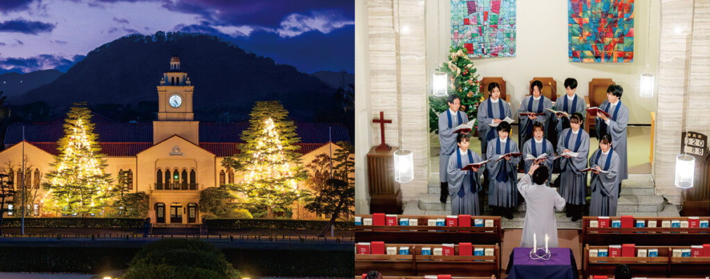 キャンパスに設置されたクリスマスツリーの点灯、在学生による大規模ホールでのクリスマスページェント、キャンパス内の礼拝堂で行われるクリスマス礼拝など、厳かなクリスマスを過ごしてみたいという方は関西学院大学の各キャンパスへ。