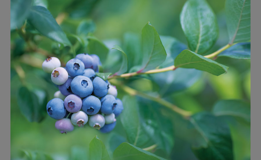 農園では36種、約1,000本のブルーベリーが、6月中旬から8月下旬まで順次食べごろになる。緑でいっぱいの小径を抜けた先、アットホームな農園でさまざまな美味しさのブルーベリーをゆっくりと味わって。