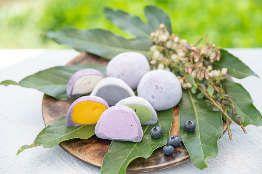 併設のカフェでは、青空の下、放牧認証牛から搾乳した牛乳と同園のブルーベリーで作ったジェラートを地元の老舗和菓子屋“かじた屋”とコラボしたジェラート大福、淡路島の「春藤珈琲焙煎所」で焙煎の同園オリジナルのオーガニックアイスコーヒー、徳島の「ほんものの紅茶のお店」のアイスティ大福とともに楽しめるお抹茶など各種ドリンクを提供する。