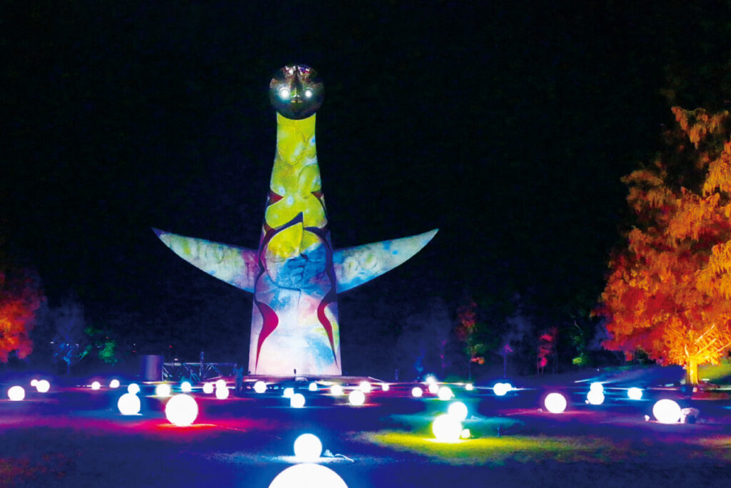 光のイリュージョンで存在感を増す太陽の塔に釘付け
