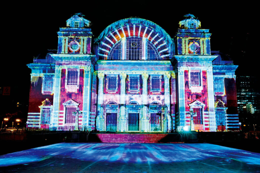 「大阪・光の饗宴」のコアプログラムの一つで、水都大阪の象徴・中之島にて様々な光のコンテンツを開催。ひと際目を引くのが、文化・芸術の拠点「大阪市中央公会堂」をキャンバスに描かれるプロジェクションマッピング。リアリティーある効果音や情景を生み出す音楽と、AIやレーザーライト、最先端のテクノロジーを用いた圧倒的映像美で、風格漂うレンガ造りの建築を大胆に飾る。最新技術を駆使した総合芸術で新体験を。