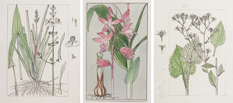 その他、東京大学総合研究博物館が所蔵する、自然史に関する図も登場。牧野日本植物図鑑の分担作画もした山田壽雄氏の植物図、子ども向けの図鑑や教科書の生き物を描いた天木茂晴氏の挿絵、中島睦子氏のラン科植物図譜の原図を見ることができる。