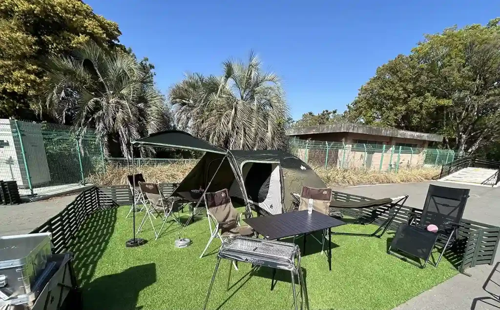 さらに、2025年5月12日からはBBQエリアとは別にデイキャンプエリアも新しく開設され、LOGOSのテントを拠点に公園内で1日中遊べるプランが用意されます。