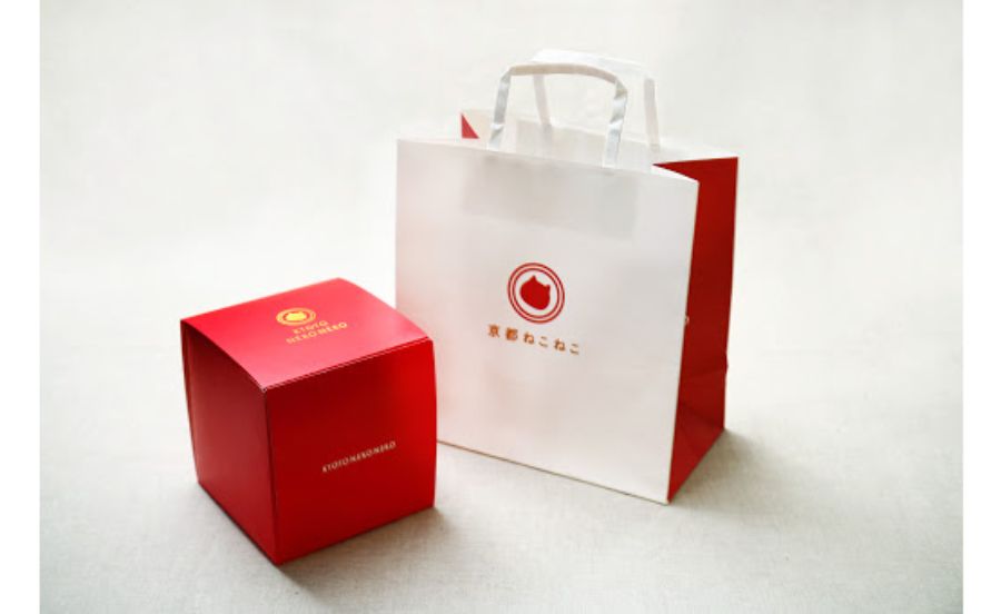 「京都ねこねこ」が一本まるごと入るロゴ入りボックスとショッパーで渡してもらえるので、観光の際のお手土産やプレゼントなど、様々なシーンで利用できそうです。