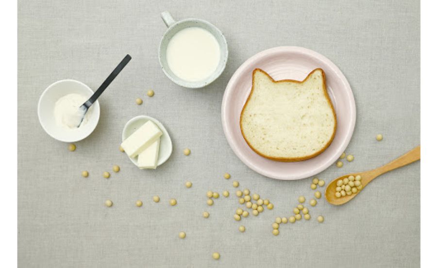 どの食パンも「ねこねこ食パン」の特徴である水を一切使用しない製法はそのままに、牛乳だけでなく国産大豆を使用。京都の豆腐屋さんが作った豆乳をプラスし、まろやかでコク深くしっとりもっちりな口あたりに仕上げています。