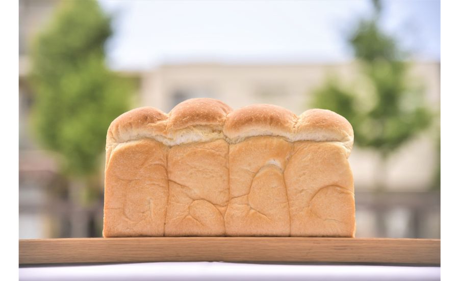 甘さ控えめで、小⻨本来の味と程よい塩味を堪能することができる食パンです。