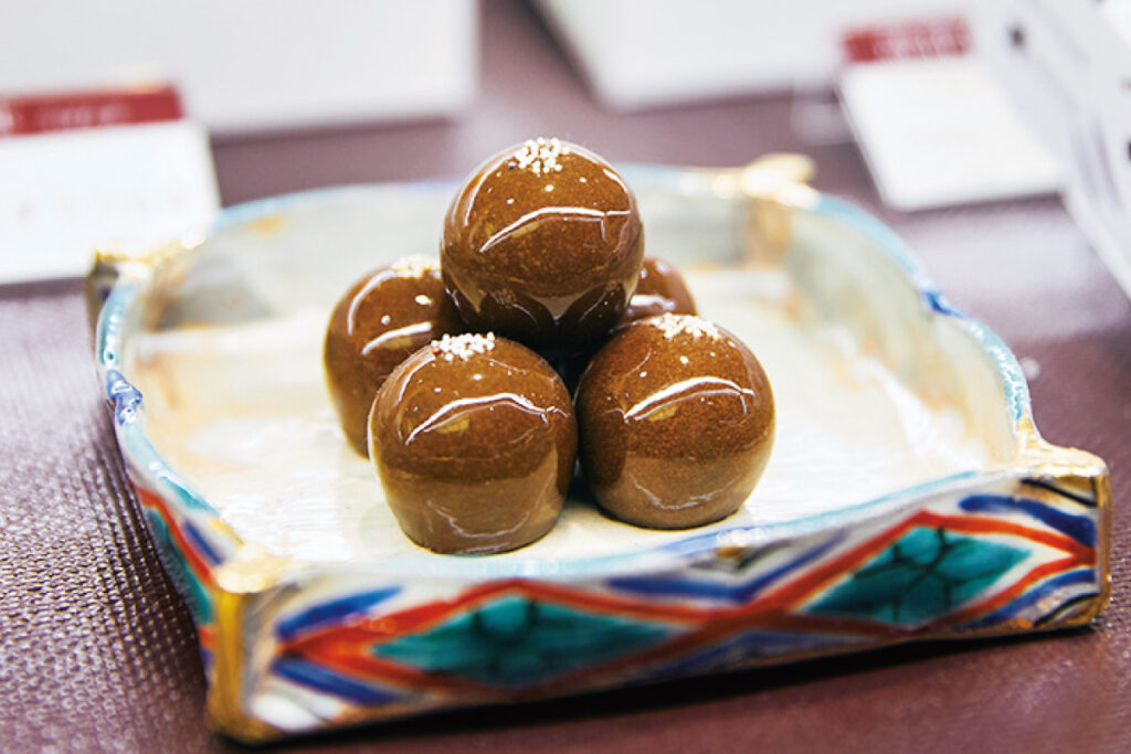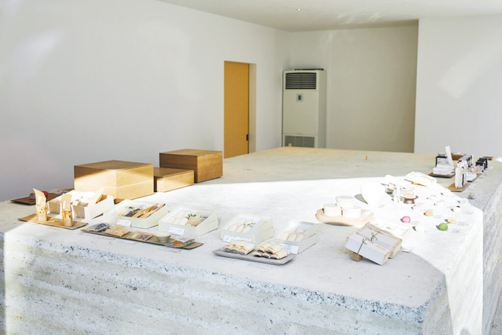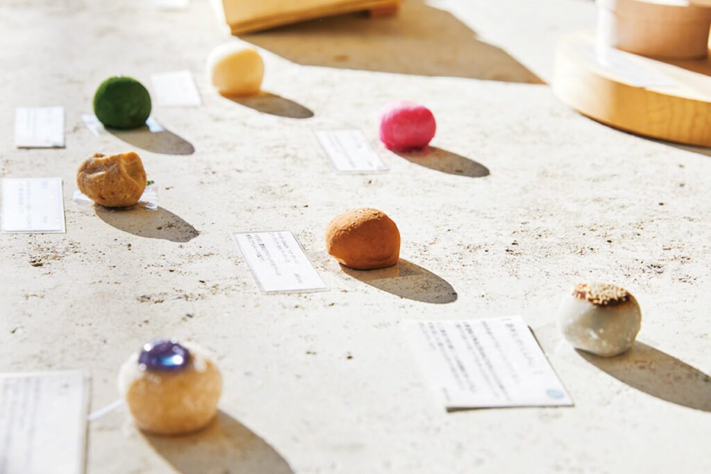 岸和田に本店を構え、「お菓子で百薬の長を目指す」をコンセプトに掲げる「餅匠しづく」が“研究と実験の場”“思考のショーケース”として、芦屋で立ち上げ。ここでは“より体に良いもの”をテーマに、オーガニック食材由来の和菓子が並ぶ。代表の石田嘉宏さんは「ハレとケで言えば、ケの日に食べるお菓子を作っていきたいです。日本の主食である白米のように、日常的に食べても飽きないようなお菓子を研究しています」と話す。