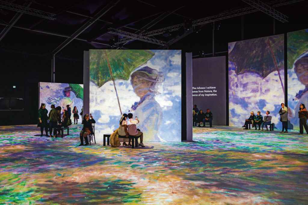 モネが生きたあの頃のパリへ誘う没入型展覧会を開催。巨大なスクリーンに映し出される作品と、力強いクラシック音楽、光・色・香りでフランス印象派に浸る感覚を。