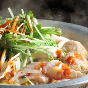 創業当時から大切にしているレシピでじっくり炊いた白濁スープの本格水炊き鍋、名物 水炊きが1人前1,078円。