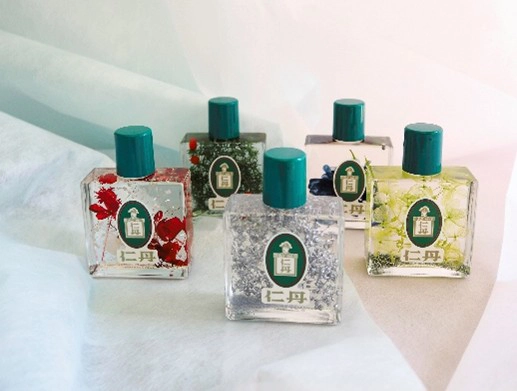 使い終わった仁丹瓶をお持ちいただくと、5種類の香りから選べるフレグランスオイルの量り売りが利用可。