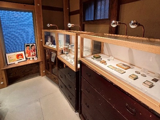 ギャラリー内のショーケースにて、仁丹シリーズの歴代ガラス容器やパッケージなどが展示されます。