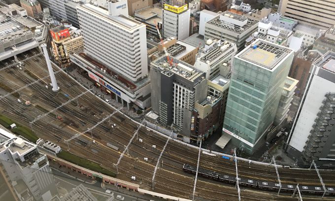 客室は全室26階以上の高層階、西側に面した客室から阪急電車の各路線が見えます。