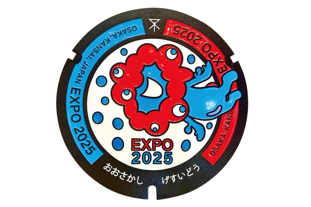 2025年日本国際博覧会(大阪・関西万博)に向けて、2022年12月から設置がスタートしているデザインマンホール。公式ロゴと、マンホールから飛び出してきそうな躍動感たっぷりのミャクミャクをレイアウト。開催までに大阪市内約400カ所での設置を予定。