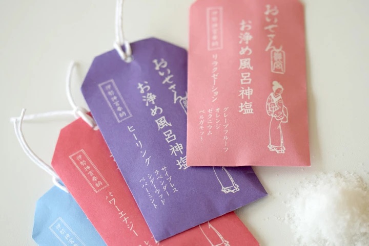おいせさんでは、「かみさまをもっと身近に」というコンセプトのもと、「ココロとカラダの浄化(デトックス)」を目指すお浄めコスメ「おいせさん」シリーズ、「お浄め風呂神塩」「あぶらとり神紙」「お浄め塩スプレー」などを販売しています。