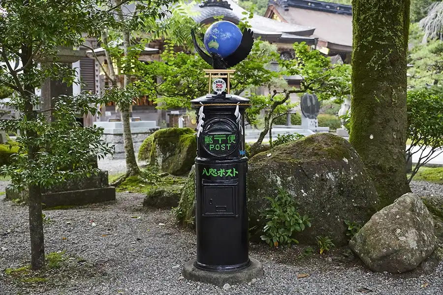 熊野本宮大社の境内には、八咫烏(やたがらす)のオブジェが乗ったユニークなポストが設置されています。八咫烏は日本神話に登場し活躍した伝説上のカラス。このポストには、実際に手紙を投函することもできるので、自分自身へ、大切な人へ、手紙に想いを込めて届けてみてはいかがでしょうか。