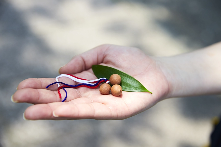 熊野速玉大社の境内には、天然記念物にも指定されている立派な梛(なぎ)の御神木があります。熊野詣では、この梛の葉がお守りとして大切にされてきました。梛の葉や実をモチーフにした、素朴でかわいらしいお守りが授与されているので、旅の記念におすすめです。
