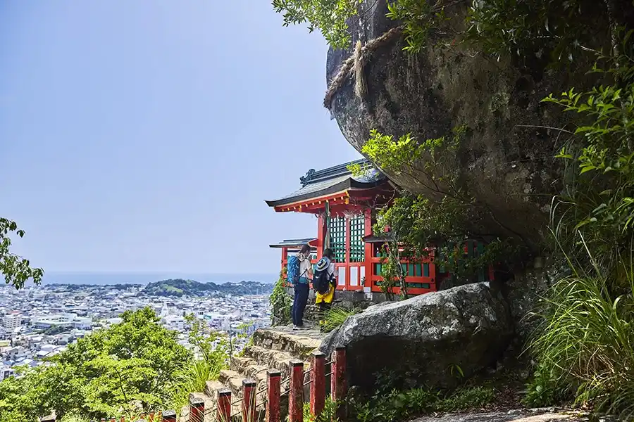 その岩のそばからは、新宮の町並みが眼下に広がり、市内随一の絶景スポットとしても知られています。道中はなかなか険しいですが、一見の価値ありです。