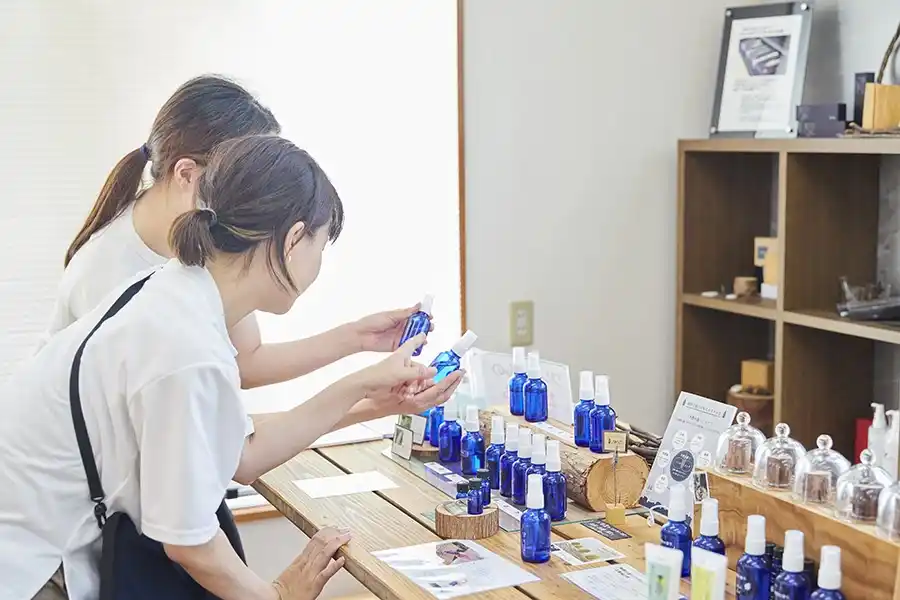 熊野の自然を“香り”で再現する専門店「Maffably(エムアファブリー)」。店内には、地元の森や植物の香りをそのまま閉じ込めた、バラエティ豊かなアイテムが並びます。