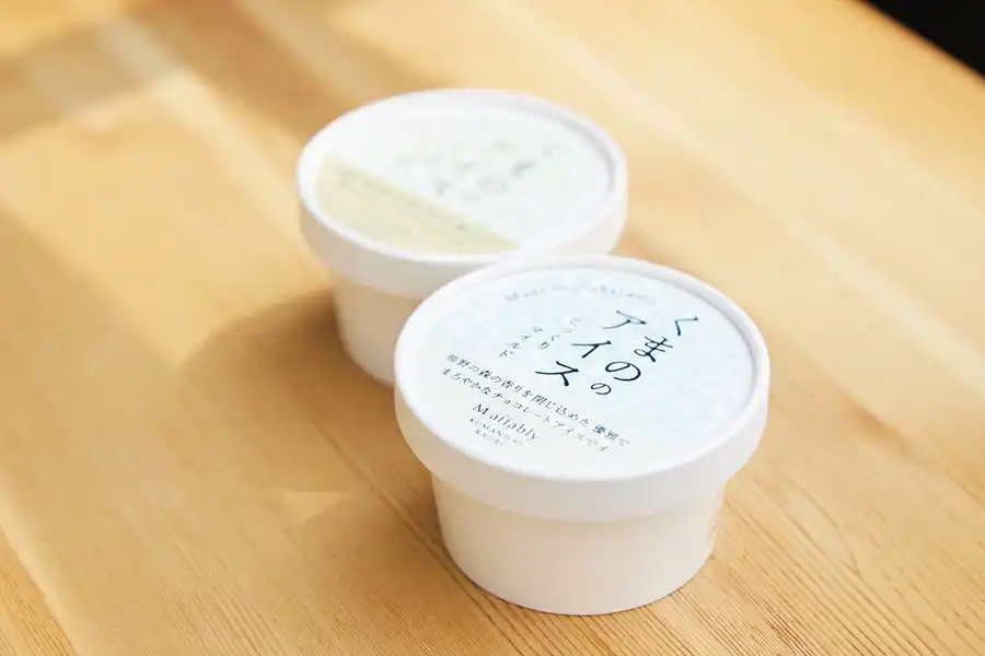 また、熊野の香りを閉じ込めたチョコレートアイス「くまののアイス」も見逃せません。天然の植物「熊野芝原杉」と「熊野クロモジ」を使った2種類のフレーバーがあり、濃厚なチョコレートに爽やかな木の香りが加わった新感覚の味わい!お土産にもおすすめです。