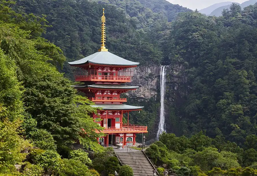 今も神仏習合の名残をとどめ、熊野信仰の寛容さが色濃く残る那智。青岸渡寺の本堂背後に姿を現す那智の瀧は、神そのものとして崇められてきました。名瀑と朱塗りの三重塔が織りなす風景は、絶好のフォトスポット。滝の轟音(ごうおん)と澄んだ空気に包まれると、内なる疲れが自然と洗い流されていきます。