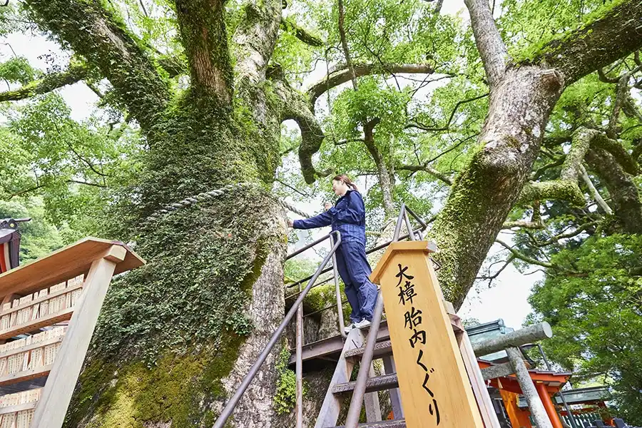 幹が空洞になっており、護摩木や絵馬を手に通り抜ける「大樟胎内くぐり」は、無病息災や長寿、所願成就などのご利益があるとされています。