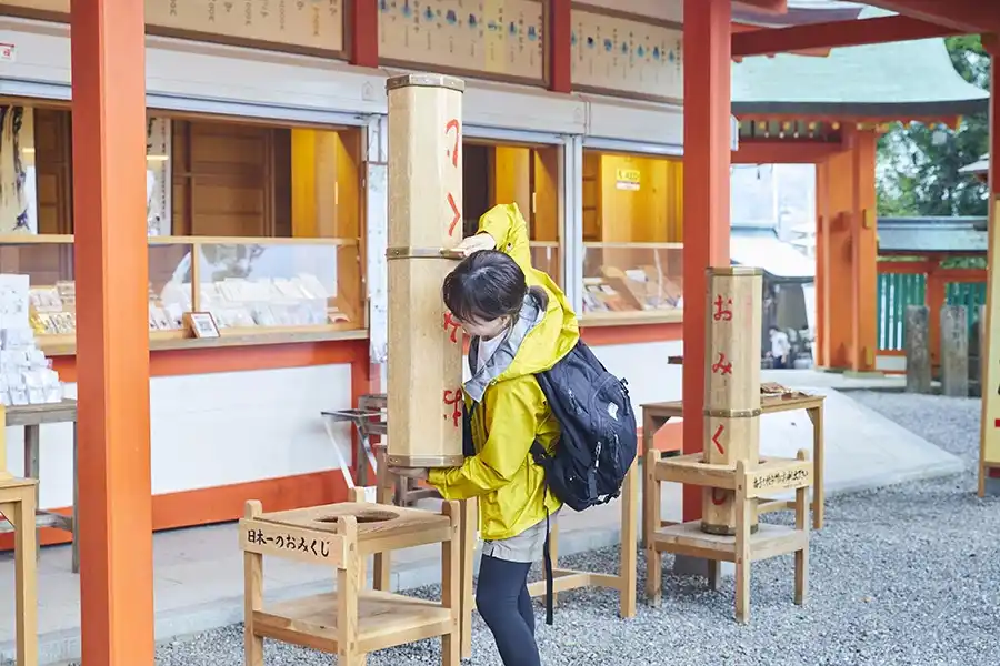 さらに境内には、日本一大きなおみくじも。なんと高さは133cm!これは、那智の瀧の高さ(133m)にちなんで作られたのだそうです。「よいしょ!」と担いで振り出すおみくじは、いつもより気合が入ること間違いなしです。