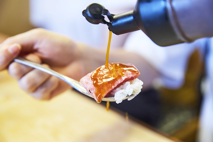秘伝のタレを惜しみなくかけて味わうのが、ヤマキ流。一口頬張ると、甘辛いタレがマグロと絡み、思わず笑みがこぼれます。旅の疲れも一気に吹き飛ぶ、そんなおいしさをぜひ体感してみてください。