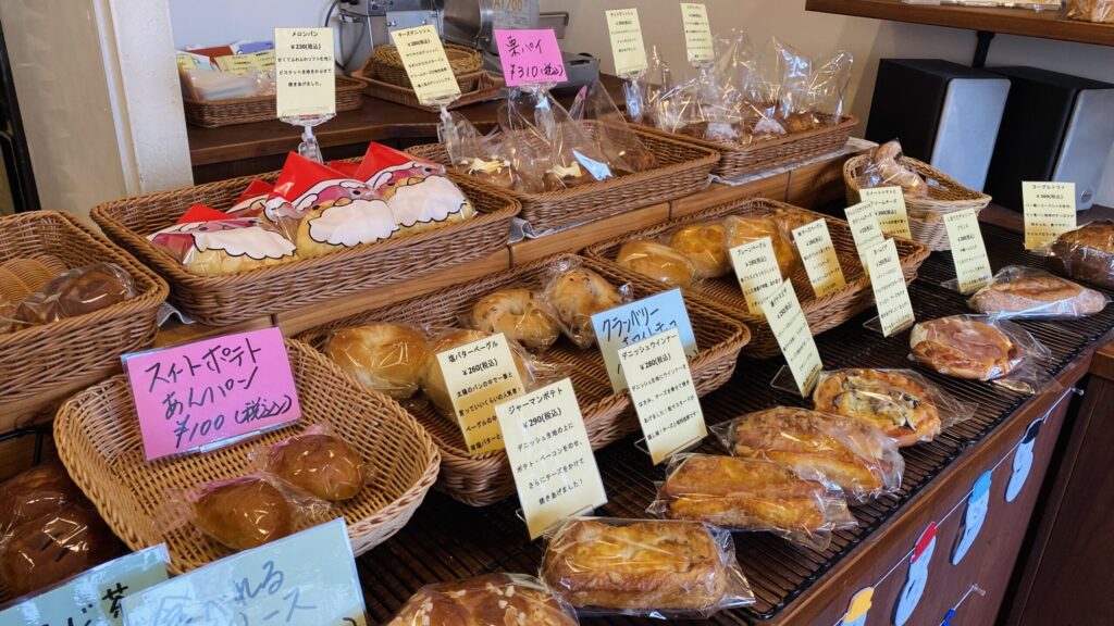 店長さんは三年間の修行を経て七年前にお店をオープン。生まれ育った場所で美味しいパンを届けたいという思いで店づくりを続けておられます。おすすめは塩バターベーグルをはじめ、シューバターパン、カレーパン、クリームパンなど。特にカレーパンの中身は自家製カレーで、こだわりの味が詰まっています。