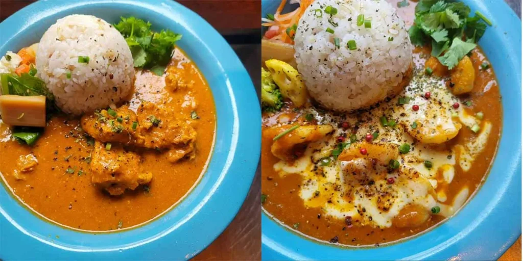 メニューはチキン、ポークビンダルー、月替わりの限定カレー(エビのトマトクリームスパイスカレーなど、一風変わったカレーは要チェック。)のほか、その時々で登場する気まぐれカレーなど、何度も来たくなってしまうラインアップ。